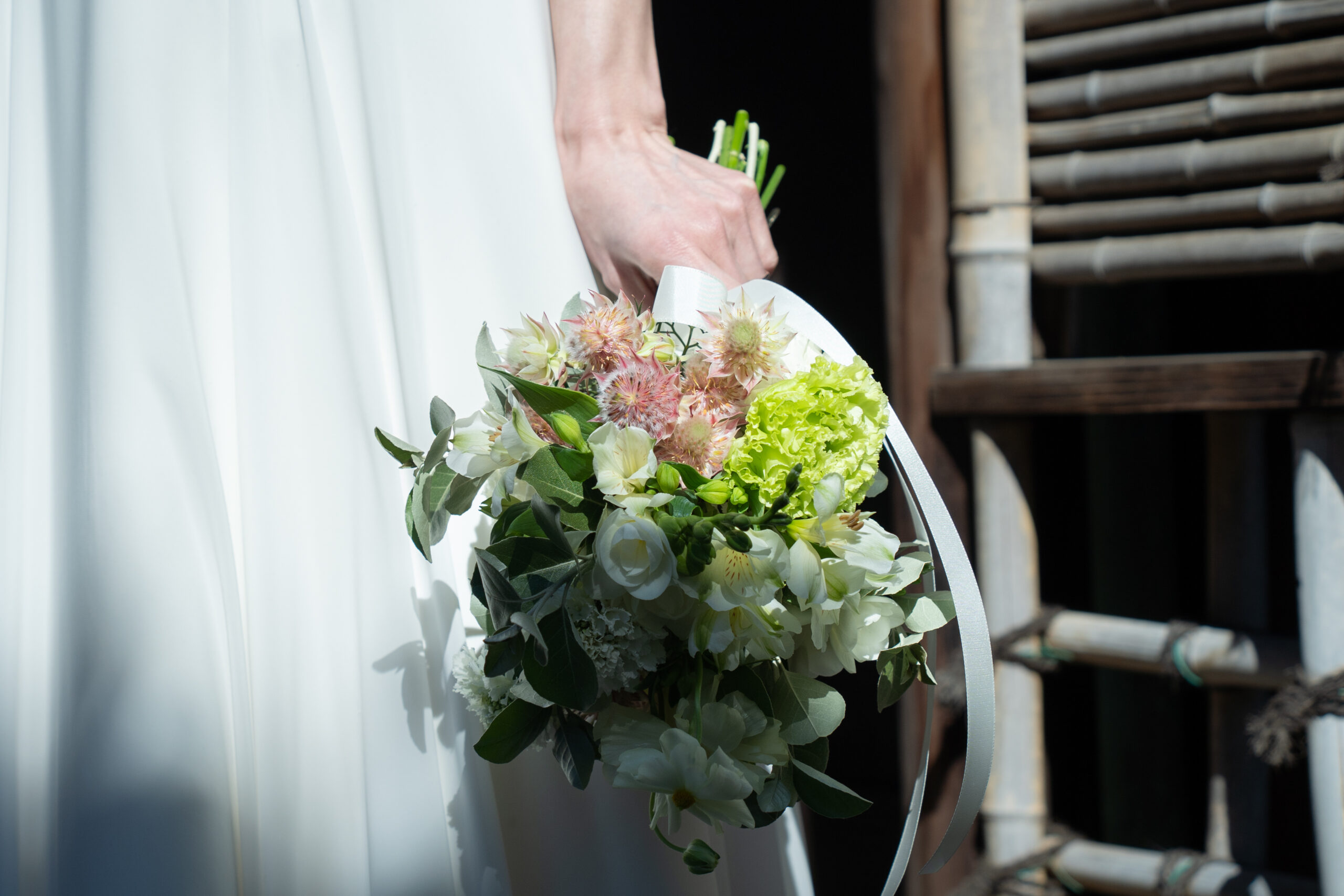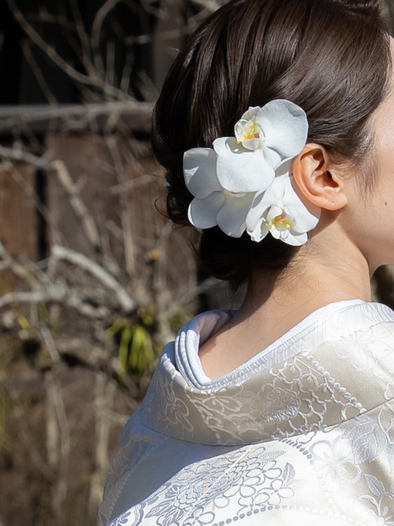 和装・洋装それぞれに合わせた世界観づくりや、テーマに沿ったオリジナルデザインのご提案も可能です。お打ち合わせを通じてご希望やこだわりを丁寧に伺い、お二人らしい花のしつらえを心を込めてお届けいたします。